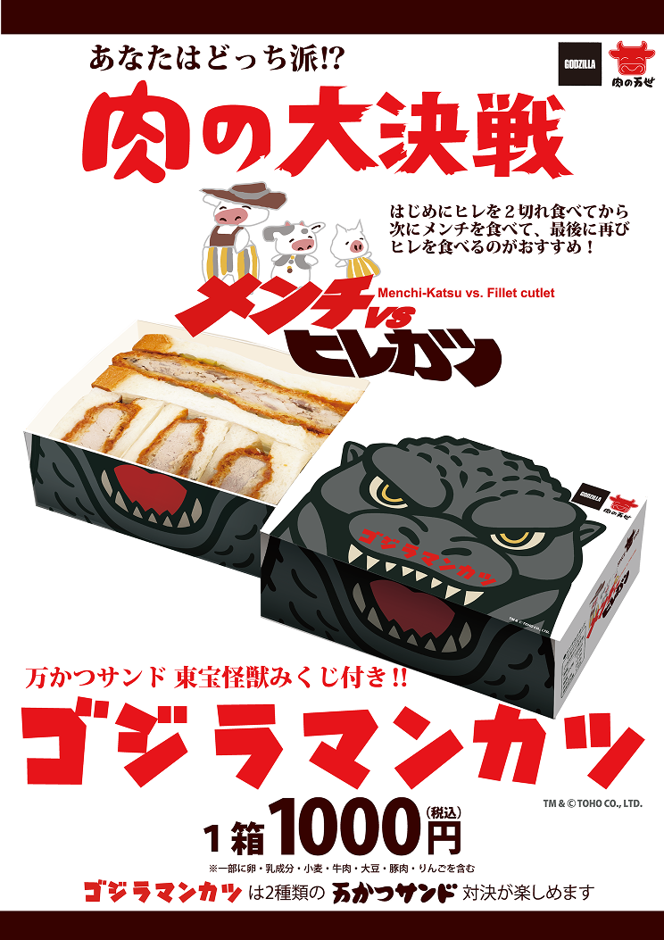 肉の万世の定番商品「万かつサンド」がゴジラとコラボ!